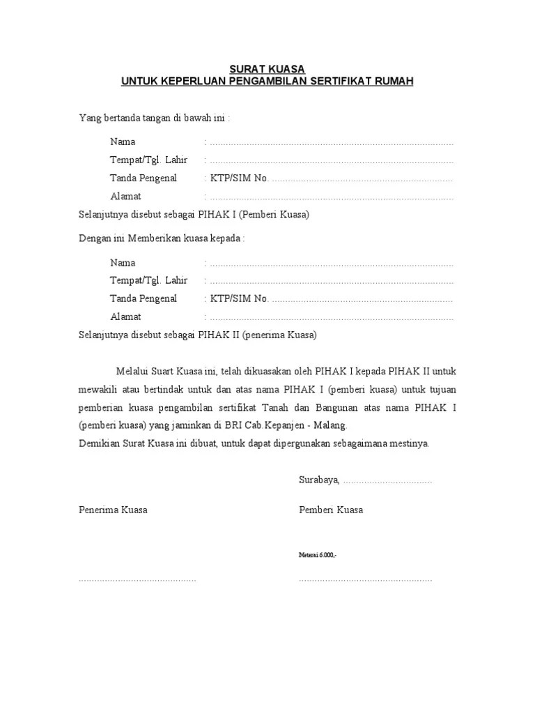 Berikut ini merupakan contoh surat kuasa pengambilan sertifikat yang dapat digunakan guna pengambilan sertifikat rumah ataupun tanah entah itu di bank dikarenakan baca tata cara kredit pinjaman bank danamon untuk usaha. Mengetahui contoh surat kuasa tanah merupakan salah satu hal penting terutama bagi mereka yang berkutat pada bisnis jual beli tanah ataupun transaksi yang selain menuliskan informasi biodata pihak pertama dan kedua, dituliskan juga keterangan rekening bank tempat pengajuan pinjaman. Artikel kali ini akan membahas contoh surat kuasa bank dan cara membuatnya untuk anda. Contoh surat perjanjian kerjasama permodalan detiklife. Surat kuasa biasanya dibuat untuk memberikan mandat kepada orang yang dipercaya dalam pengambilan diberi kuasa penuh untuk menjual sebidang tanah seluasnya 1800 m2 dengan nomor shm 1420 seri 2754a yang berlokasi di jl.